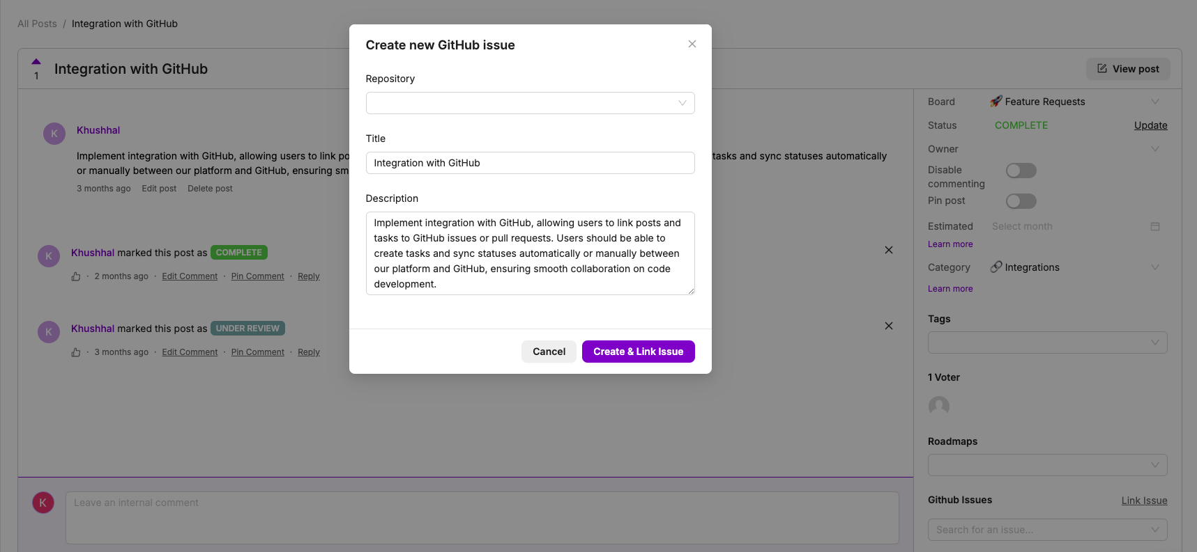 Access linked FeedbackChimp posts directly from GitHub issues. Use the link from the FeedbackChimp bot to revisit full customer context whenever needed.